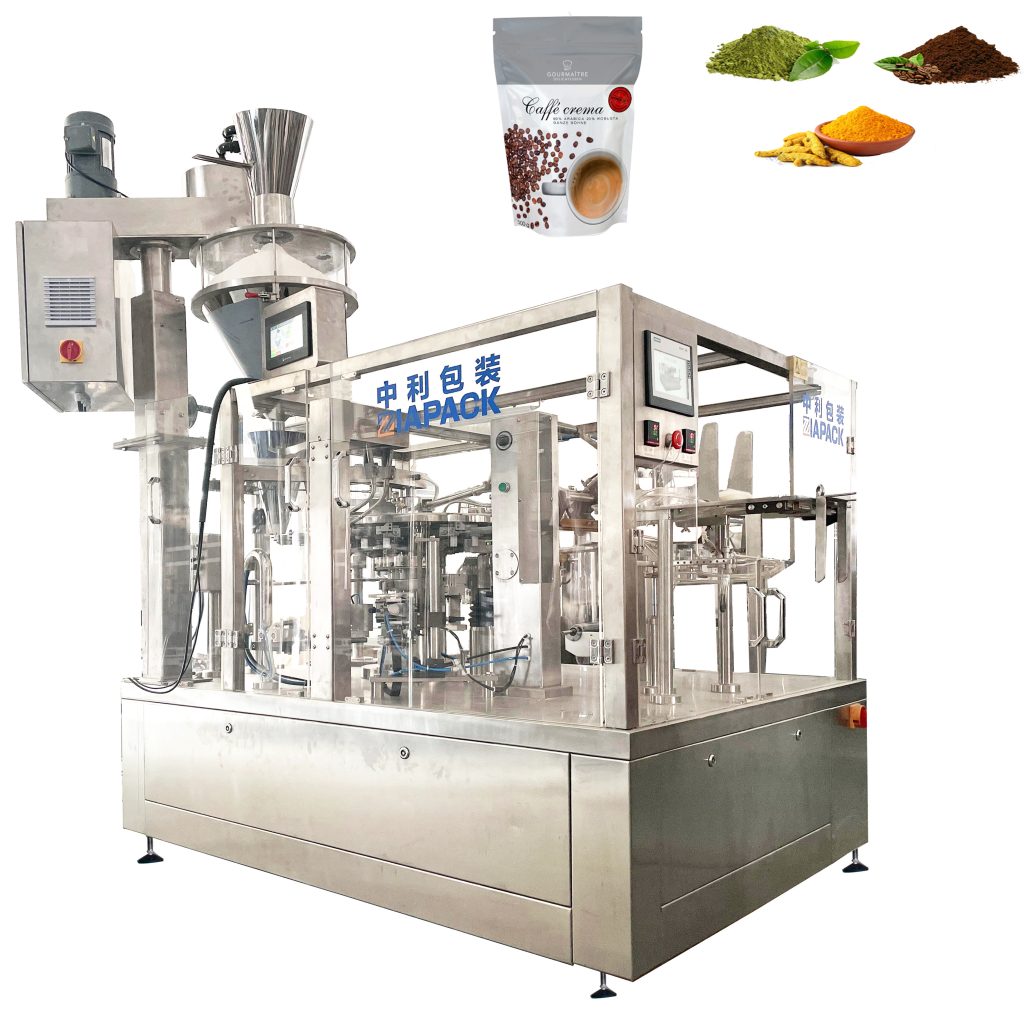 로타리 가방 제공 포장기 다른 투약으로 (multihead 무게를 다는 사람 송곳 충전물, 액체 충전물 등과 같은), 세분화된, 분말, 액체, 풀 등을 위한 자동적인 패킹을 위해 적당할 수 있습니다. 미리 만들어진 서 있는 주머니, 편평한 주머니를 가진 rpoduct의 다른 종류 곧.
