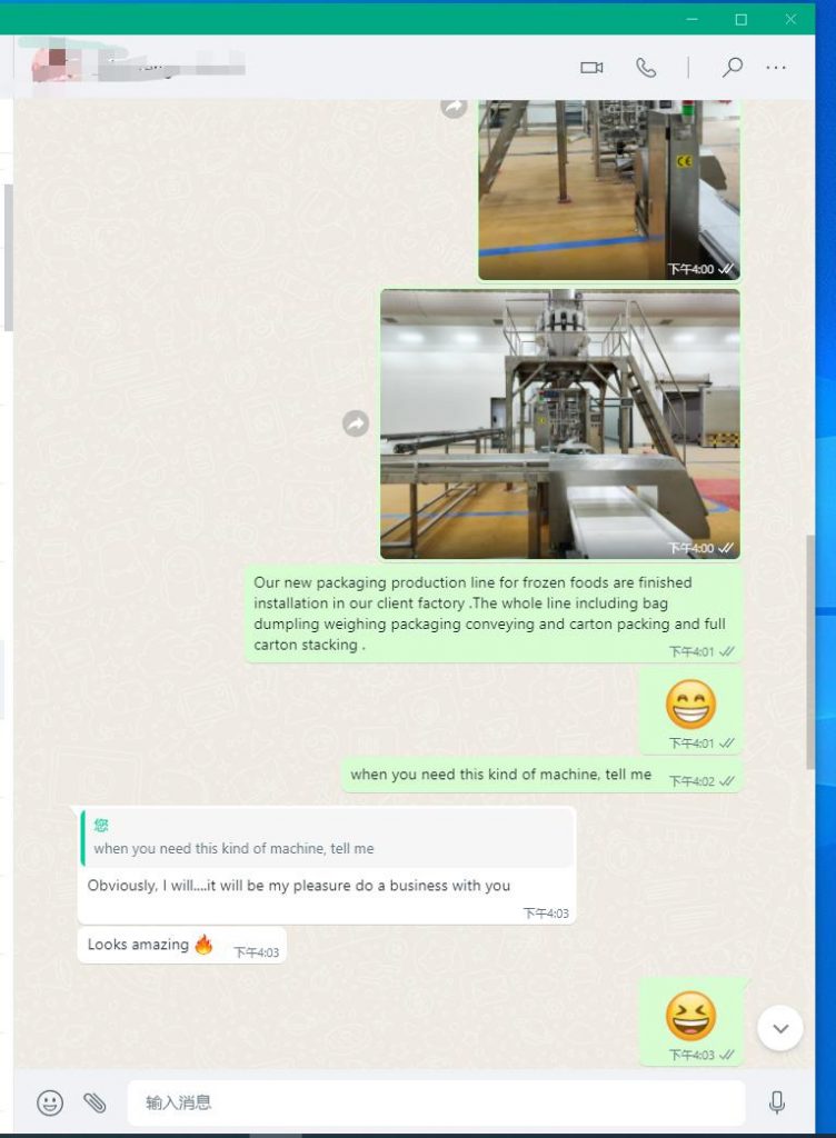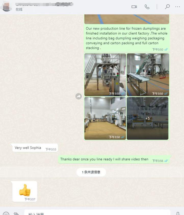 또 다른 자동 냉동 식품 백 포장 및 카톤 충전 라인이 고객 공장에 성공적으로 설치되었습니다!
