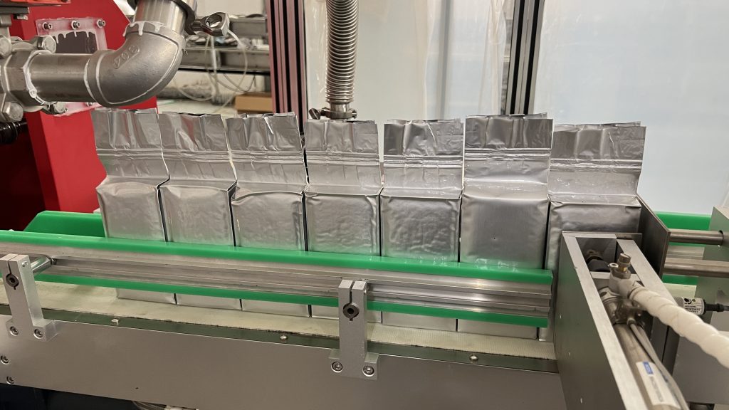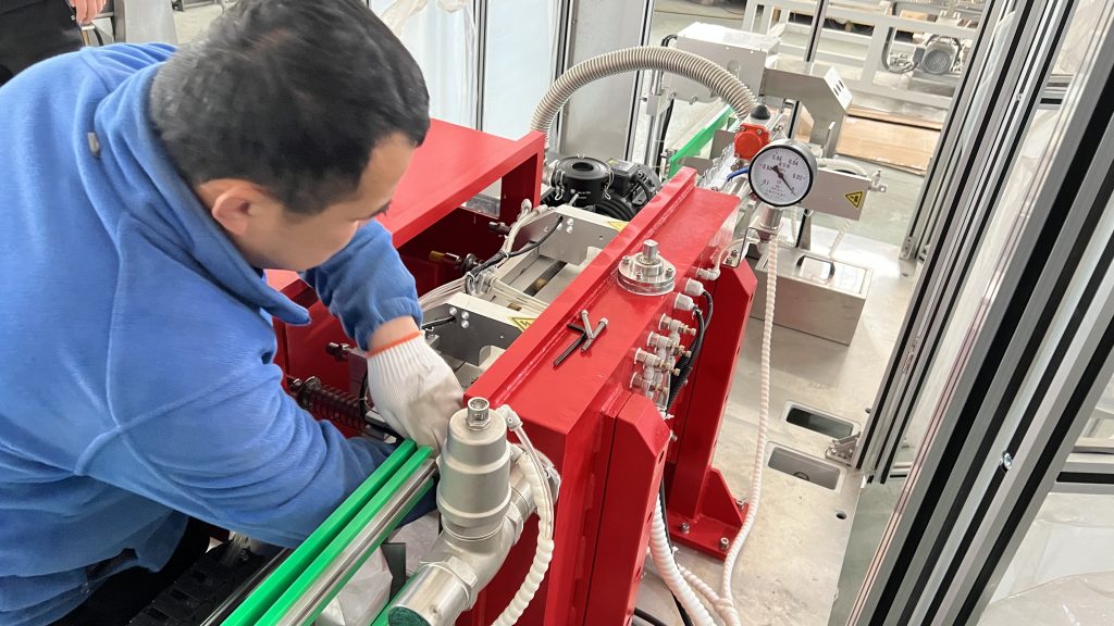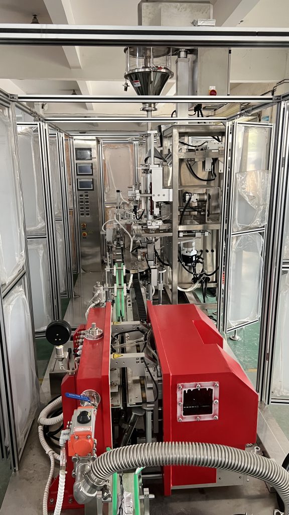 이란에서 온 우리 고객은 250그램 커피 가루용 충전 포장 기계를 형성하는 한 세트의 자동 벽돌 진공 백을 주문했습니다. 그리고 고객 요구 사항에 따라 진공 챔버를 경고로 빨간색으로 그렸습니다.