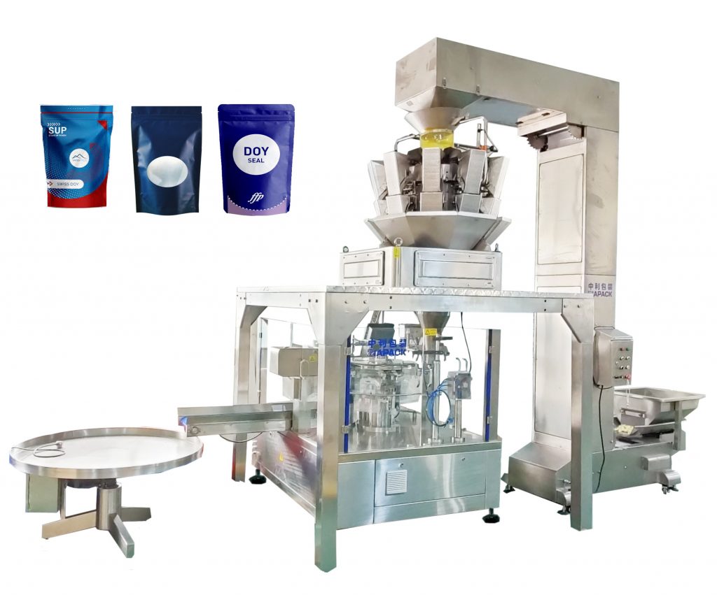 미리 만들어진 파우치 충진 및 봉인 기계는 효율성과 안정성이 8 개의 작업 스테이션으로 구성되어 있으며 스탠드 업 백, 지퍼 백, 스파웃 백 및 다양한 사전 제작 된 파우치 패키지를 강조합니다. 서로 다른 도징 시스템 (조합 저울 / 선형 저울 / 오거 스크류 / 피스톤 필러)과 자동 리프팅 컨베이어와 협력하여 과립, 액체 및 분말에 널리 사용됩니다.