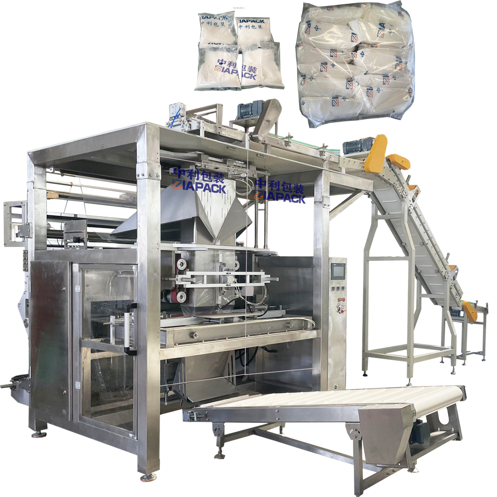 이 기계는 큰 가방에 작은 가방을 포장하는 데 적합합니다. 기계는 자동으로 가방을 만들고 작은 가방을 채운 다음 큰 가방을 밀봉할 수 있습니다. 다음을 포함한 이 기계: