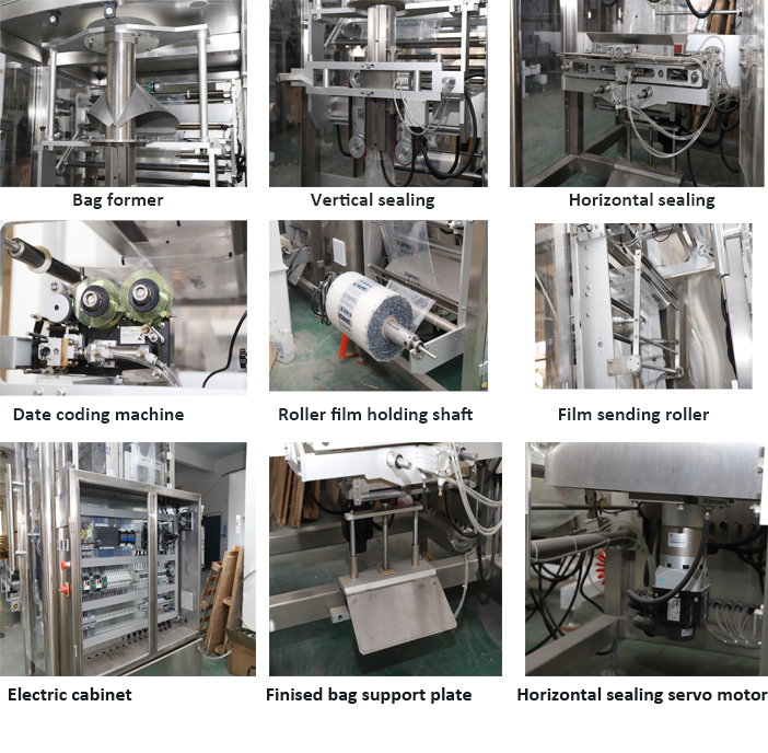 이 기계 장치는 한 세트 ZL720 수직 백 성형 충전 밀봉 기계 및 한 세트 ZLC-5000 4 버킷 저울, 한 세트 DT3 수직 엘리베이터 및 출력 컨베이어 기계를 포함합니다. 전체 기계 장치는 자동 백 제작, 제품 계량, 제품 충전에 도달할 수 있습니다. 밀봉 및 날짜 코딩. 판금, 세제 분말, 쌀, 콩 및 기타 과립 제품 포장에 널리 사용됩니다.